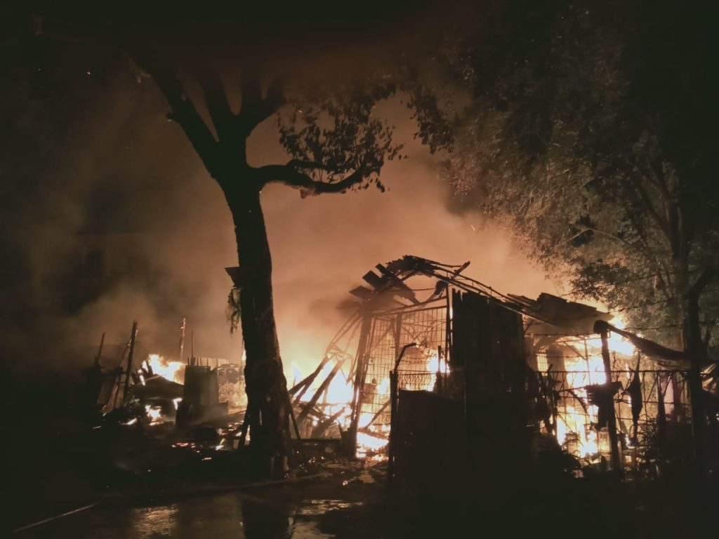 Kebakaran melahap satu kios Kelapa Bakar, di Jl. Ir. Hj. Juanda, Depok, tepatnya di ujung Jl. Daiman Raya sekitar pukul 18.30 WIB, pada Minggu (06/09)
