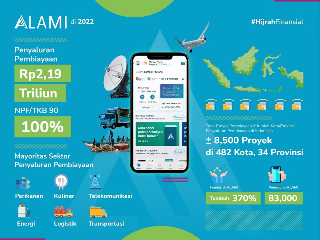 ALAMI merupakan perusahaan teknologi keuangan peer-to-peer lending berbasis syariah yang didirikan sejak 2018 oleh Dima Djani, Harza Sandityo, Bembi Juniar, dan Arief Setiabudi. ALAMI telah berizin dari Otoritas Jasa Keuangan (“OJK”) sejak 27 Mei 2020. Saat ini, ALAMI adalah platform pembiayaan bagi UMKM berbasis syariah terbesar di dunia dengan pencairan pembiayaan lebih dari Rp 2 triliun dengan tingkat Non-Performing Financing (“NPF”) di level 0% dan Tingkat Keberhasilan Bayar (TKB90) dana mencapai 100%. ALAMI telah memberikan pembiayaan kepada lebih dari 8.500 proyek-proyek UMKM pada sektor strategis di Indonesia. Keberadaan ekosistem ALAMI telah mencakup 482 kota di 34 Provinsi seluruh Indonesia, baik dari sisi penyandang dana (funders), penerima manfaat pembiayaan (beneficiaries), dengan jenis kegiatan komersial maupun sosial yang telah berjalan. Upaya ALAMI telah mendapatkan pengakuan berupa penghargaan bergengsi, termasuk “Platform Pembiayaan P2P Terbaik” di tingkat global oleh The Asset Triple A Awards selama dua tahun berturut-turut sejak 2019. Selengkapnya di http://alamisharia.co.id.