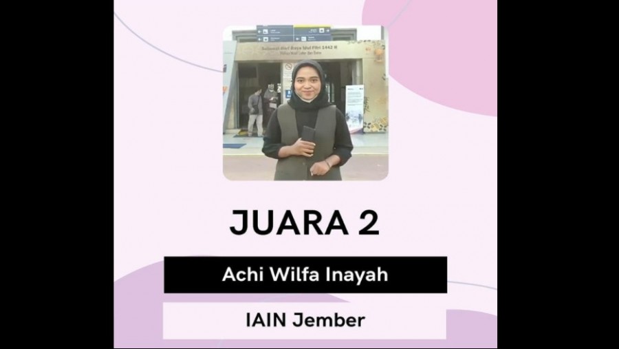 Mahasiswi program studi Komunikasi dan Penyiaran Islam Fakultas Dakwah Universitas Islam Negeri (UIN) Kiai Haji Achmad Siddiq (KHAS) Jember, Achi Wilfa Inayah, kembali mengharumkan nama almamater usai menjuarai ajang Broadcasting Competition 2021 yang digelar Universitas Negeri Yogyakarta (UNY). Mahasiswi semester empat ini berhasil merebut juara dua kategori News Reporter Nuskara EO.