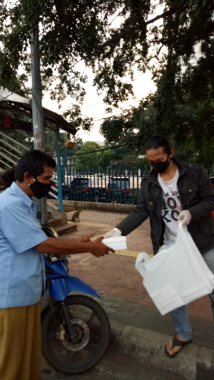 “Pembagian nasi kotak ini kami sebarkan sejak pertengahan April lalu, pembagian rutin setiap hari di 5 wilayah di DKI Jakarta.